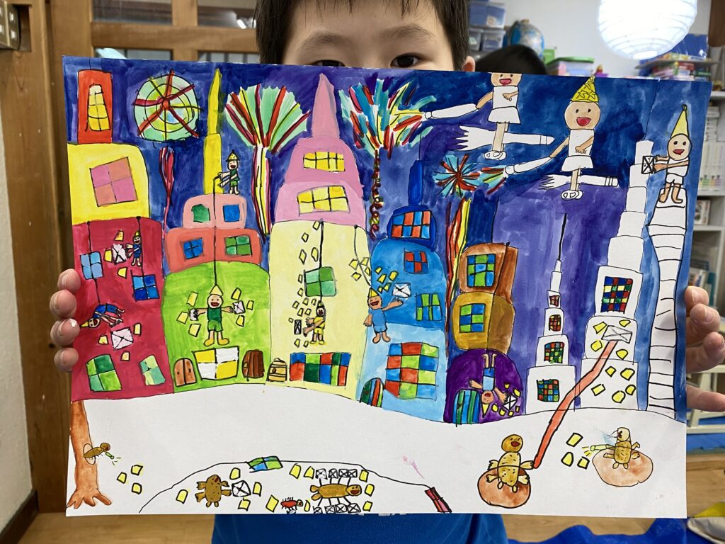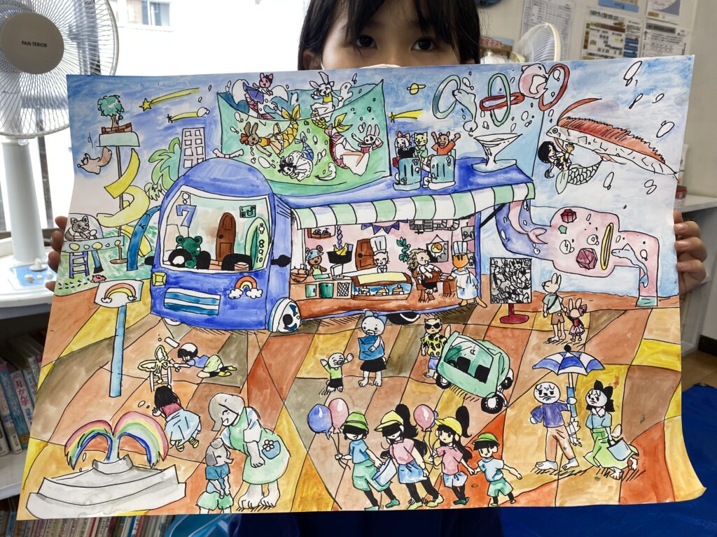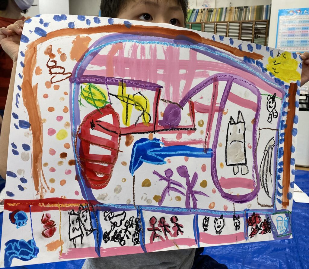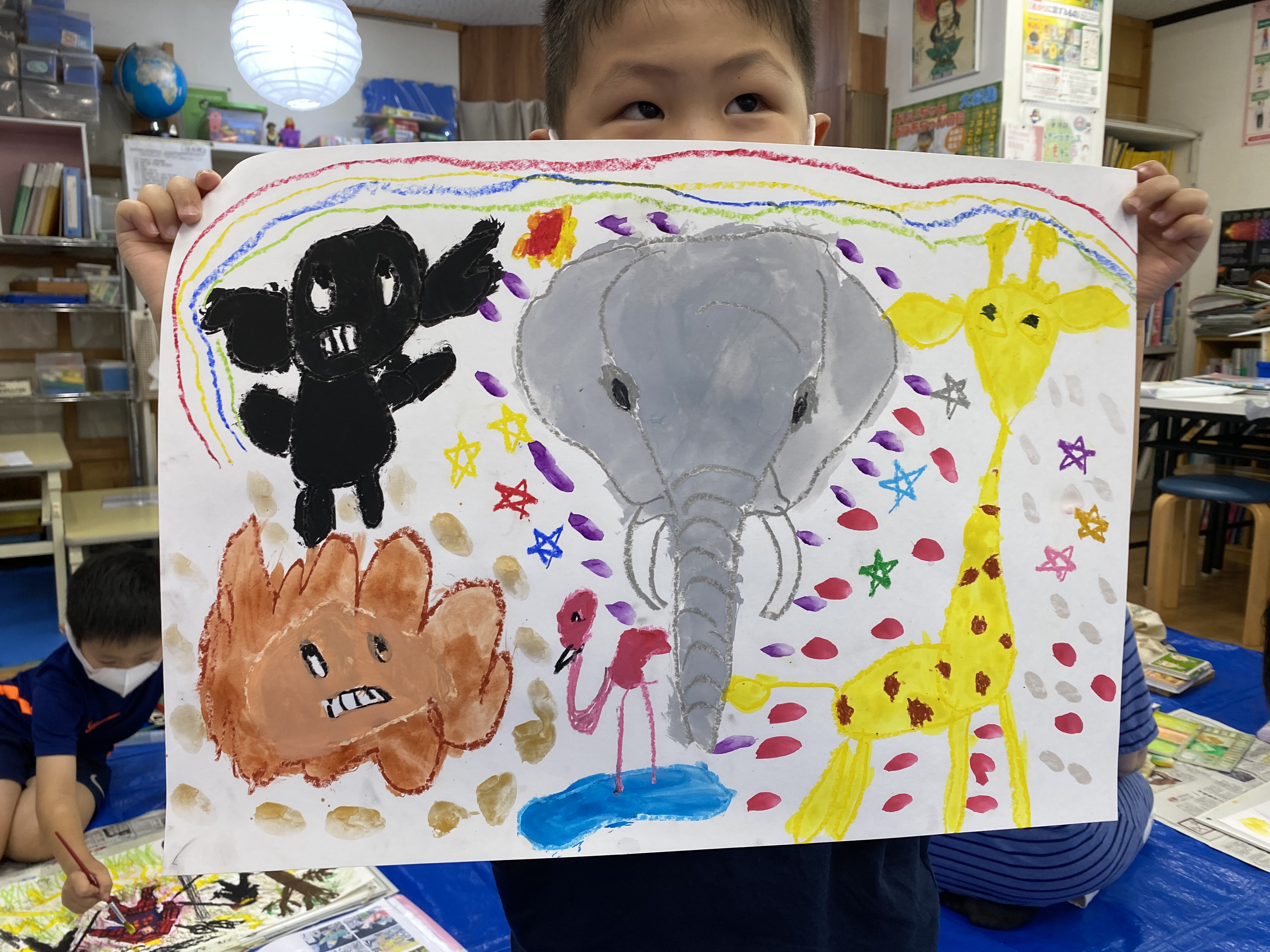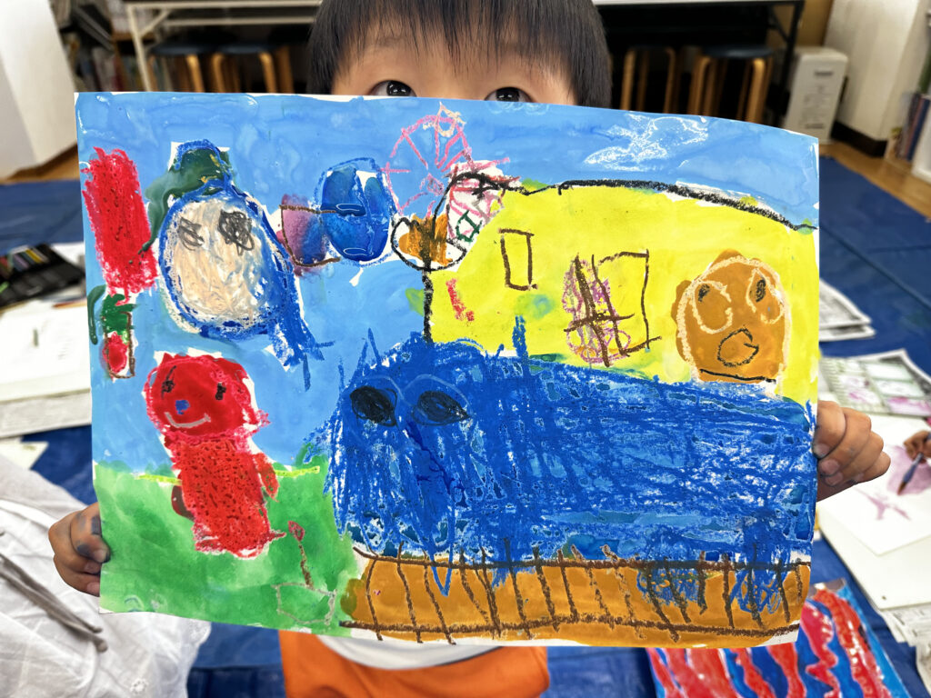 身の回りのこと、環境問題、動物、宇宙、日々の出来事、空想の世界…白い紙の上で自由に表現する中で、子どもたちは物事を深く考える力や観察する力、頭の中でイメージする力を大きく伸ばしていきます。
