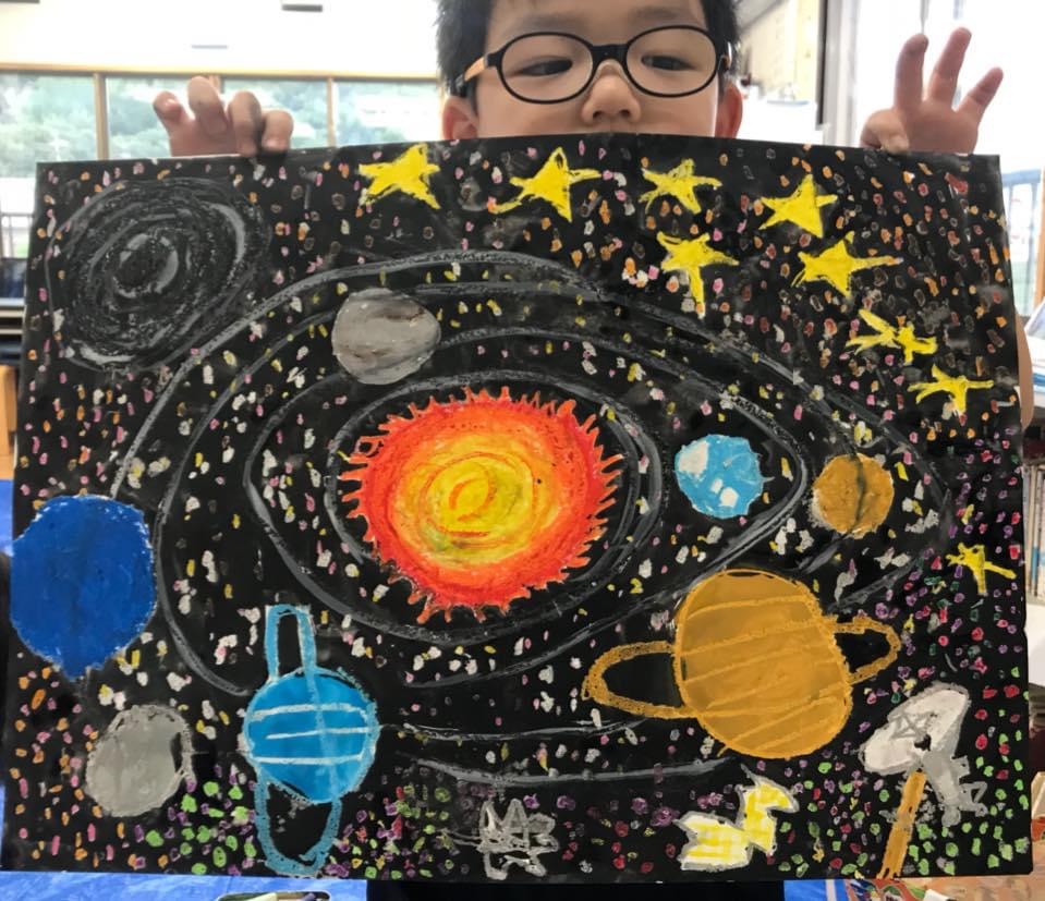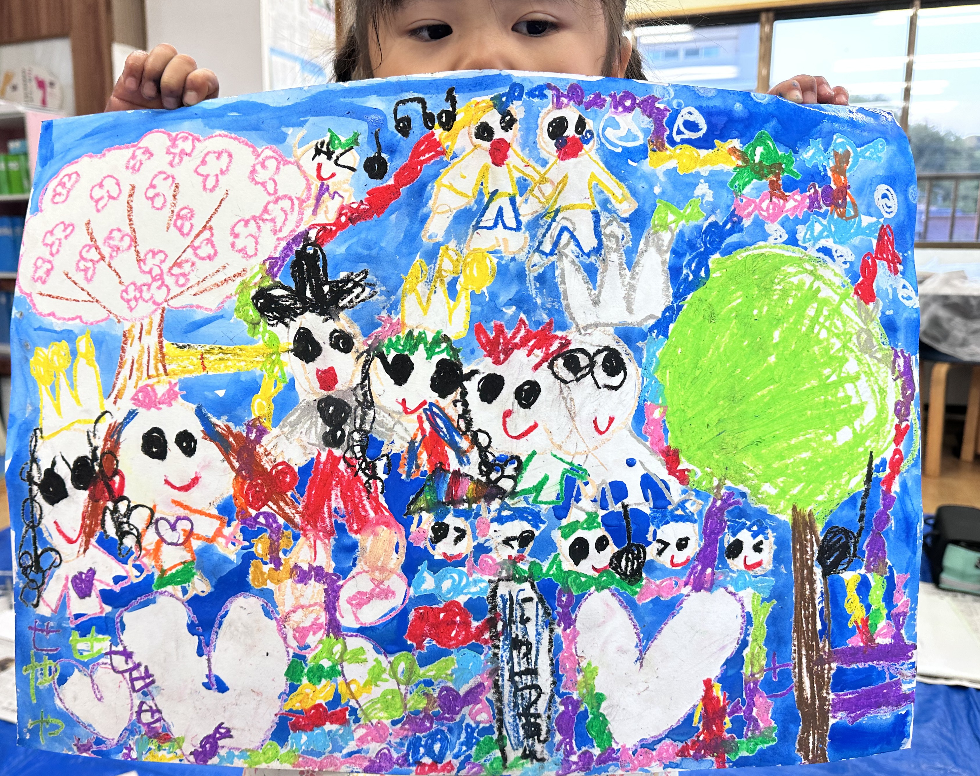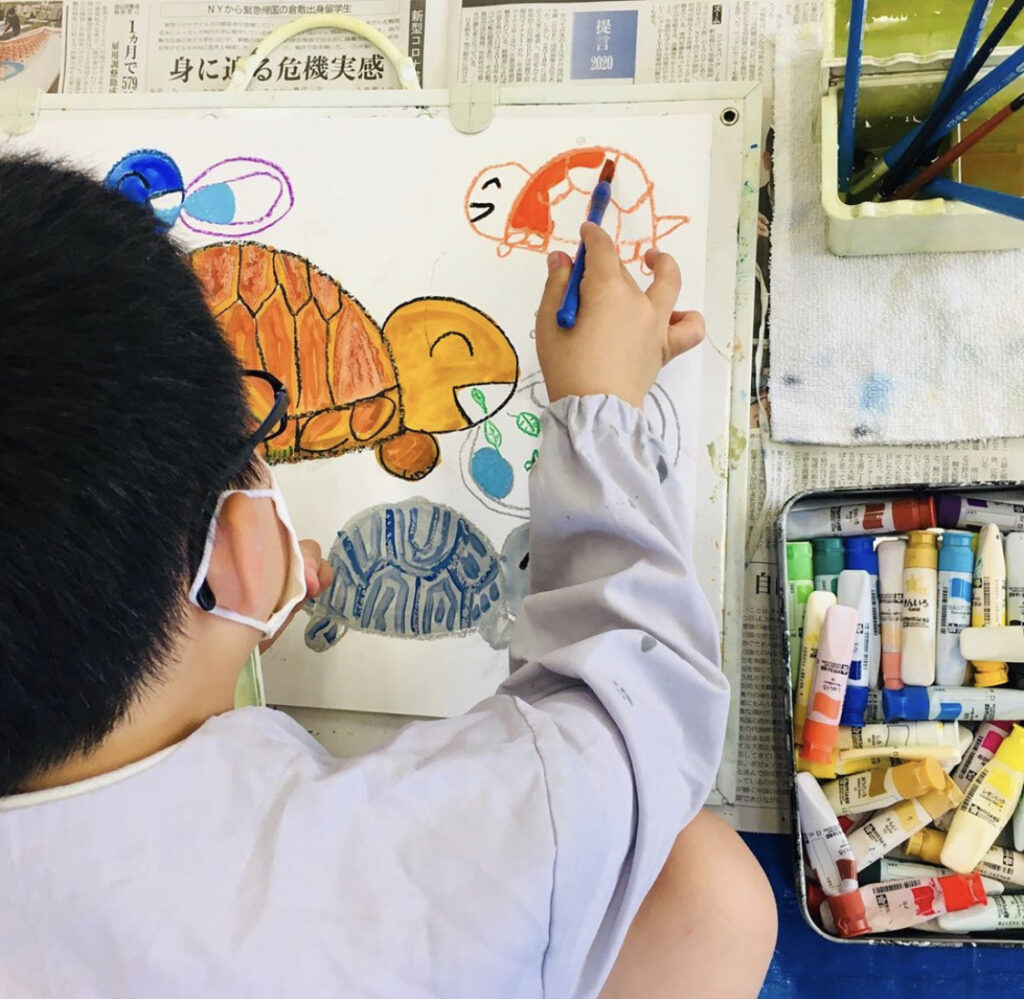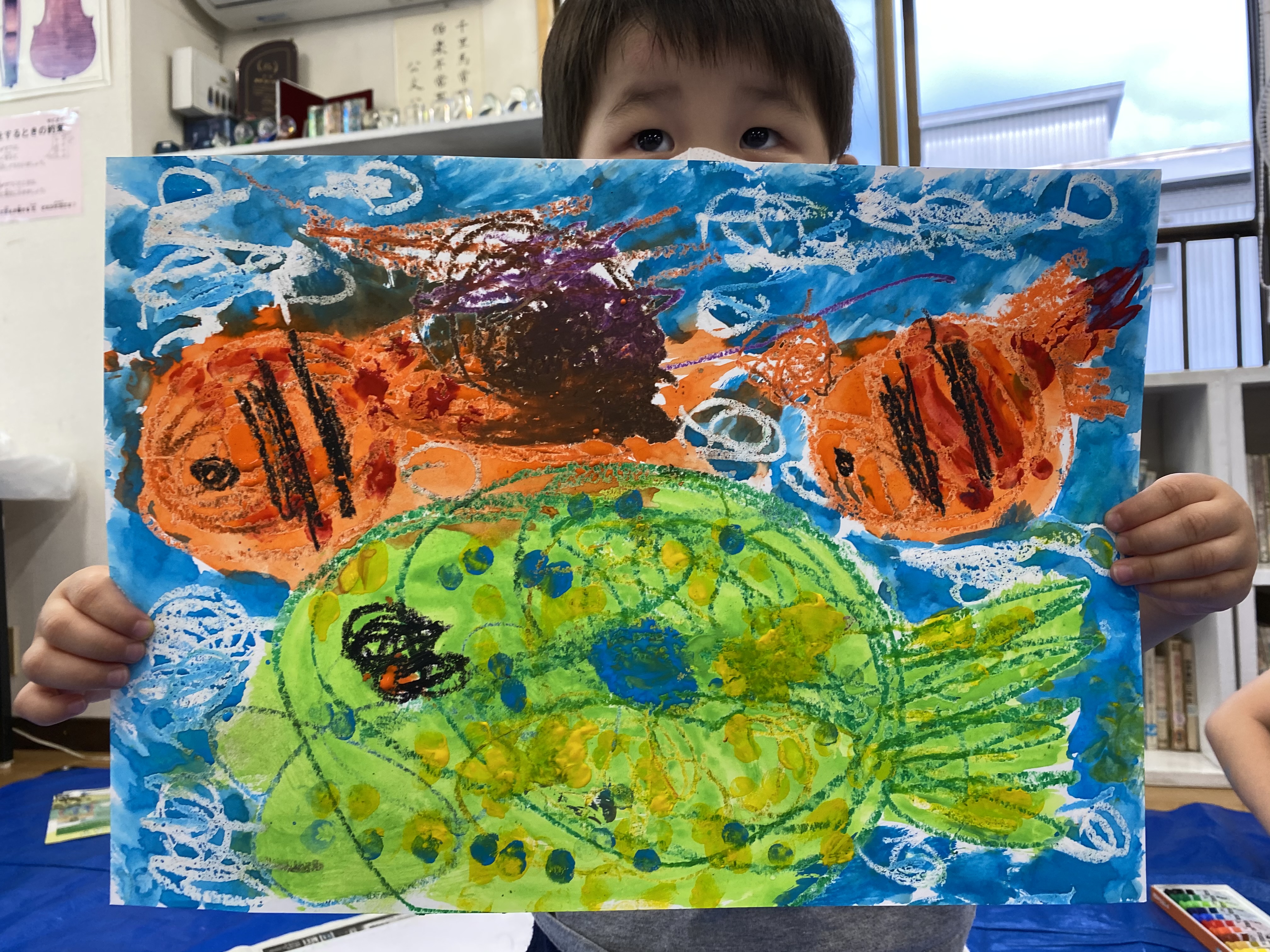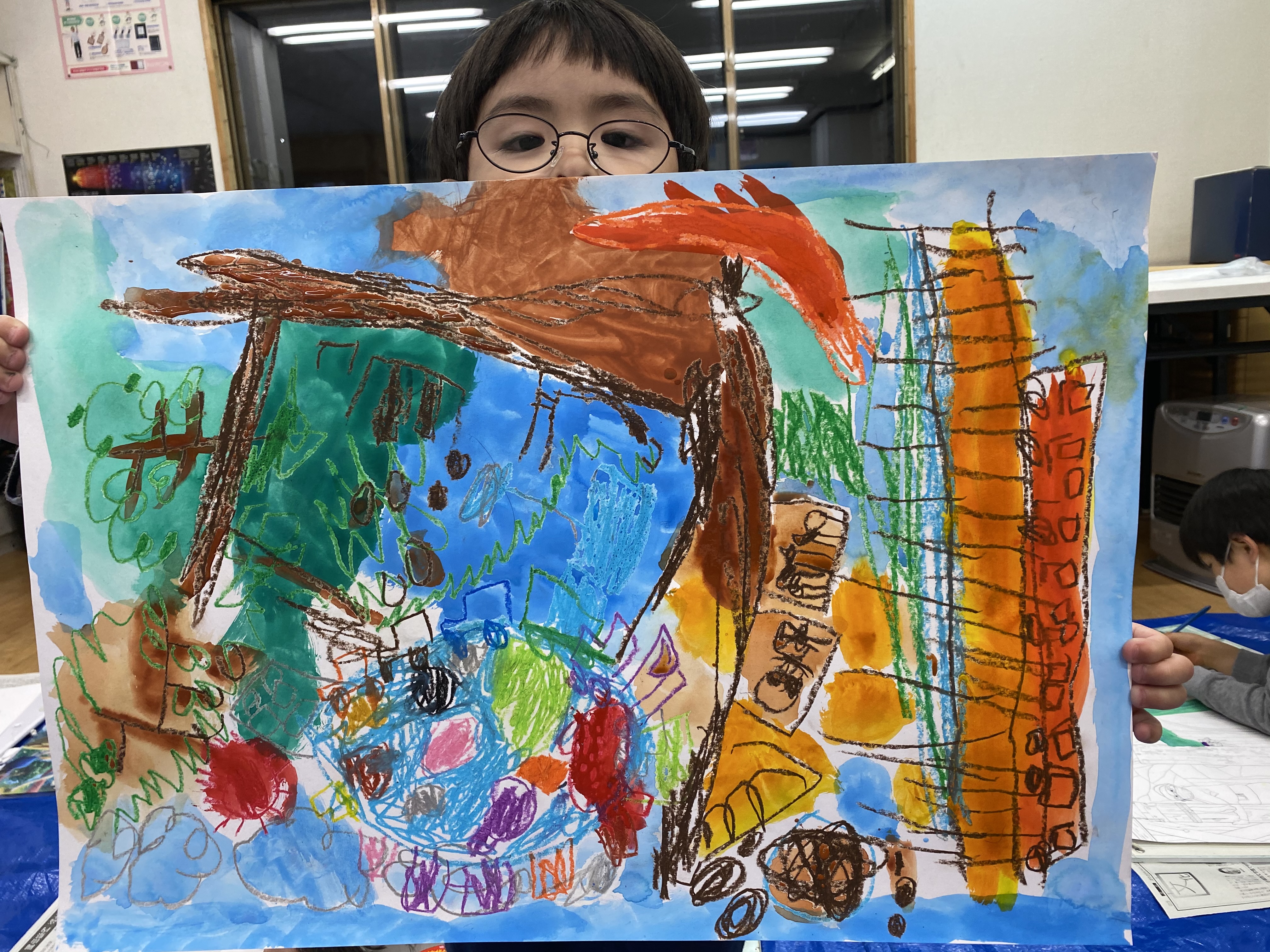 身の回りのこと、環境問題、動物、宇宙、日々の出来事、空想の世界…白い紙の上で自由に表現する中で、子どもたちは物事を深く考える力や観察する力、頭の中でイメージする力を大きく伸ばしていきます。