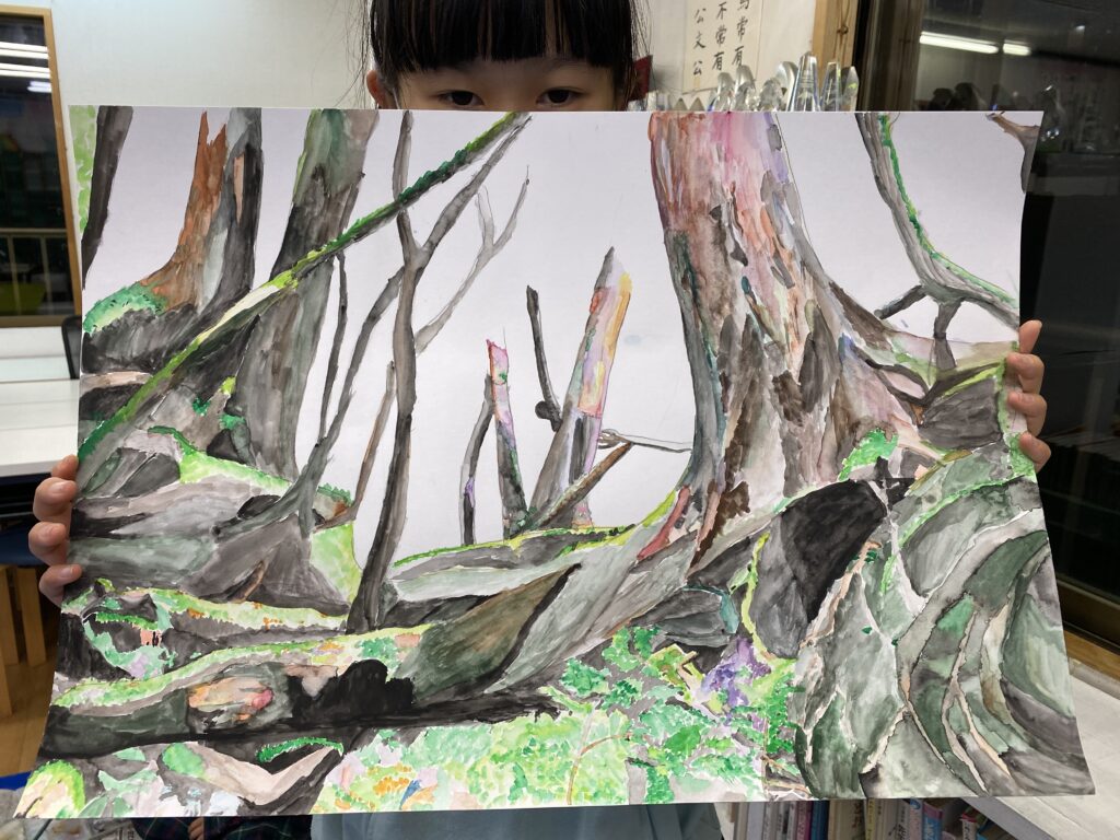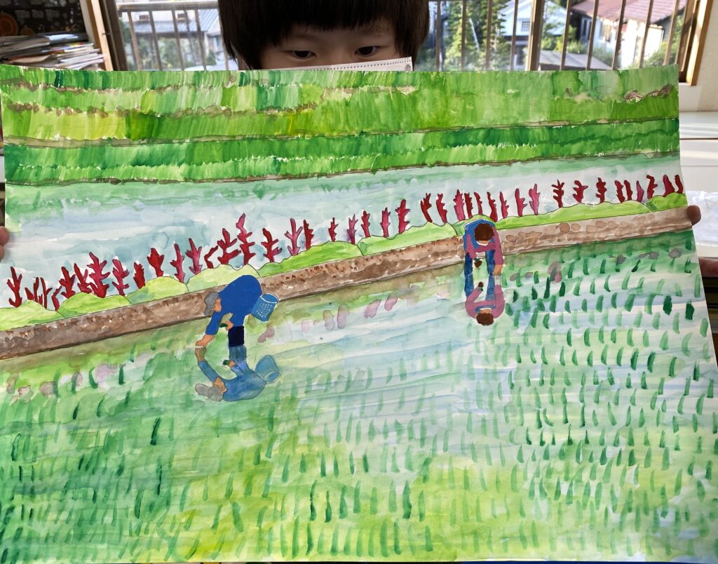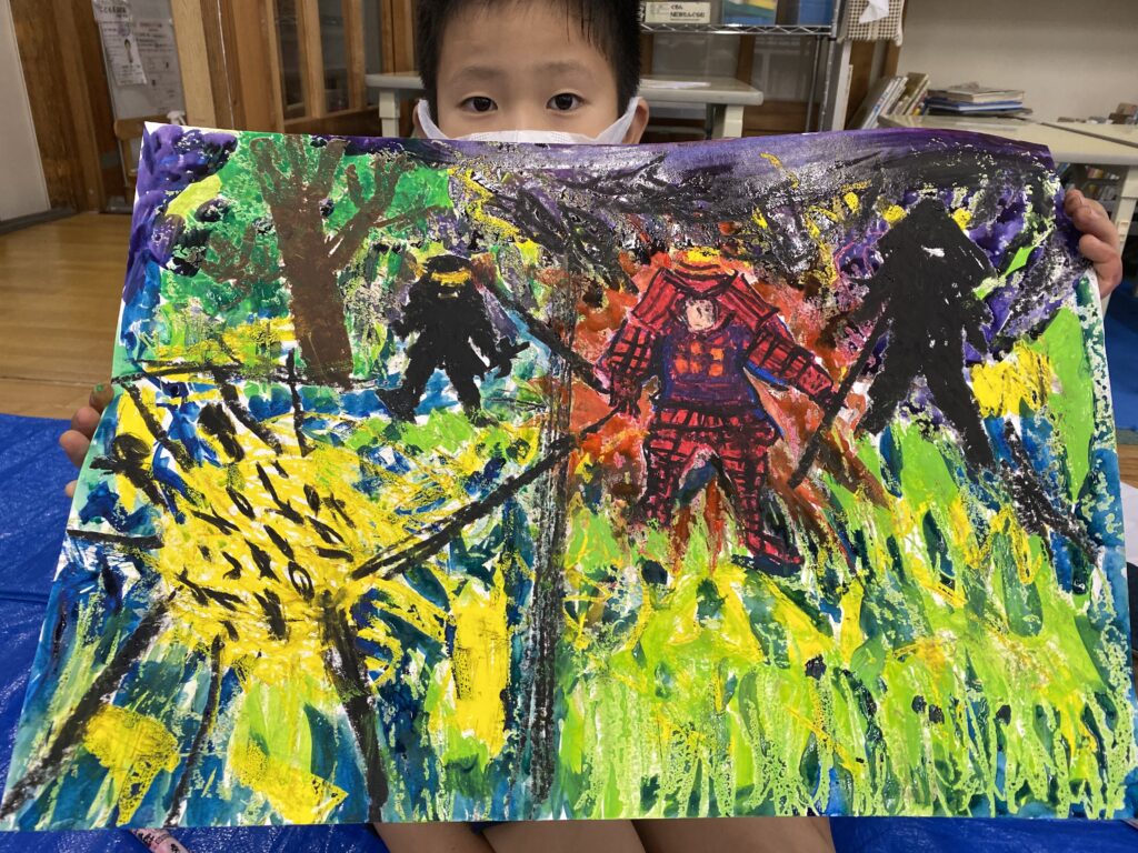 当教室は、まるで昔の「寺子屋」のように、小さなお子さまから小学6年生までが一緒に絵を描いています。年上のお兄さんやお姉さんが描いている絵を見て、「あんな風に描いてみたい!」「あの色はどうやって作るの?」と、子どもたちの「どうして?」「もっと知りたい!」という探求心が自然と芽生えます。